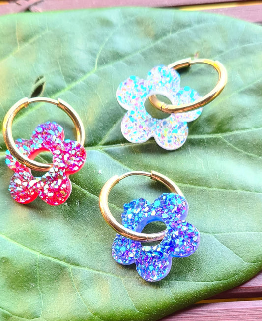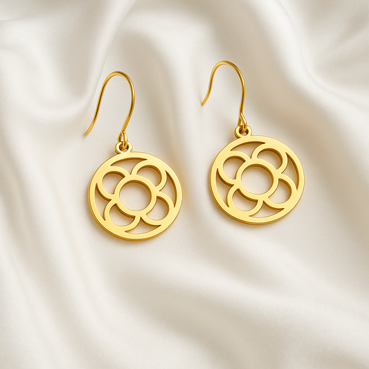 Pendientes Flor de Barcelona en acero dorado – Variaciones con cristales