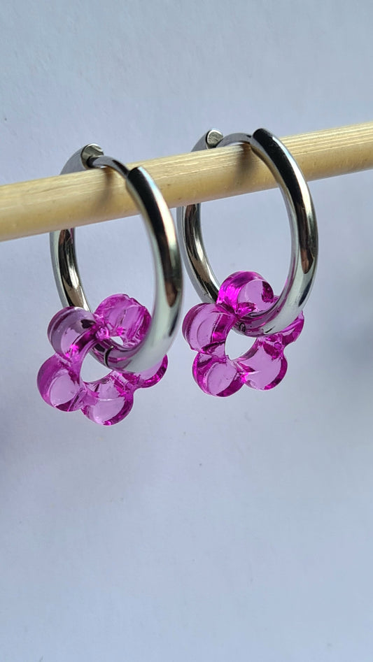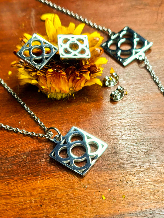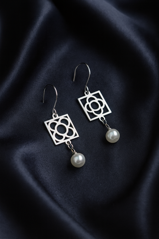 Pendientes Flor de Barcelona en acero con perla – Diseños cuadrados y circulares