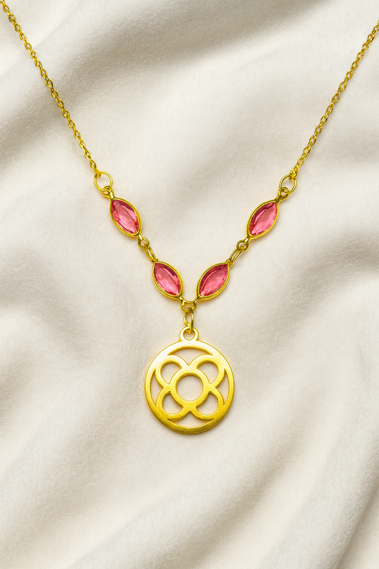 Colgante Flor de Barcelona en acero dorado – Variaciones con navettes de colores